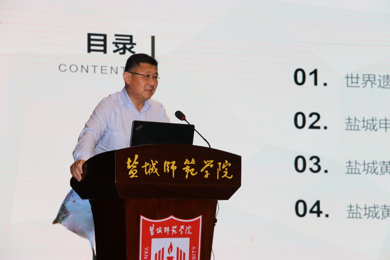 盐城市自然资源和规划局调研员、市申遗办主任吴其江致辞。他介绍了盐城黄海湿地自然遗产的申报历程,指出,盐城黄海湿地是中国这个海洋大国绵延数千公里海岸线上第一块与海洋直接相关的世界自然遗产,标志着中国世界自然遗产从陆地走向海洋“零的突破”。盐城黄海湿地自然遗产的独特性支持了丰富的生物多样性,是我国第一块位于经济发达、人口稠密地区的世界自然遗产地。遗产申报成功是盐城的骄傲,更是对世界遗产保护的庄重承诺。
