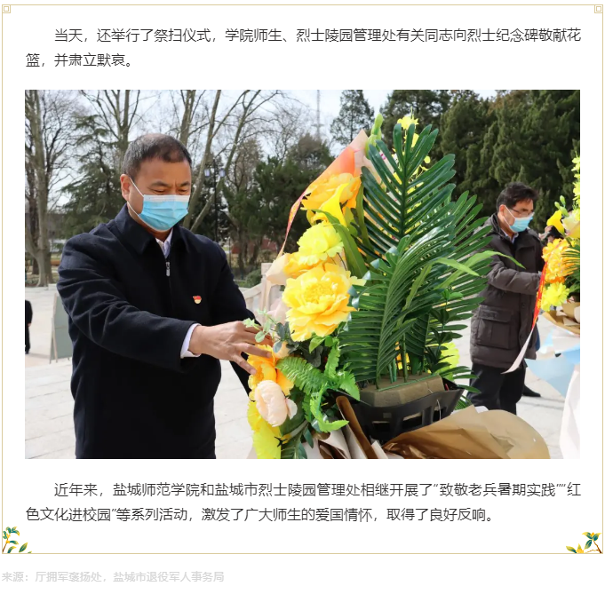 坐标网讯:《盐城网》缅怀革命烈士 弘扬英烈精神