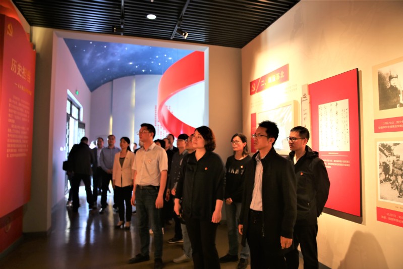 活动第二站来到的是中共中央华中局第一次扩大会议旧址。在这里,党员教师们一同走访了中共中央华中局第一次扩大会议旧址、中共中央华中局纪念馆、华中党校、刘少奇住处、人物碑廊、文化记忆墙、真理桥等红色遗迹,通过文物史料、图片雕塑和多媒体影像,回顾了新四军和华中局在盐阜工作、奋斗的那段历史。支部党员教师还专门走进新四军廉政建设主题展馆,进行了廉政教育,心灵再一次接受洗礼。