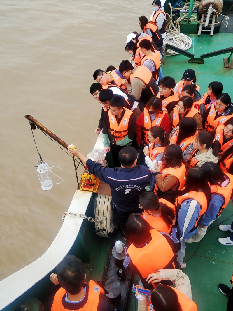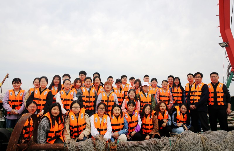 上午9点30分开始,全体人员分两批先后抵达盐城市滨海港,登上大连现代海洋牧场研究院“辽科1号”综合科考船开始为期一天的海上生态见习活动。在活动中,同学们认真聆听指导教师和科研人员的现场讲解,学习并掌握了海洋生态调查的技术要点,对相关实验方法的标准操作做了详细记录。同学们兴致高昂、积极提问,做到了课堂所学理论知识与科研实践的充分融会贯通。