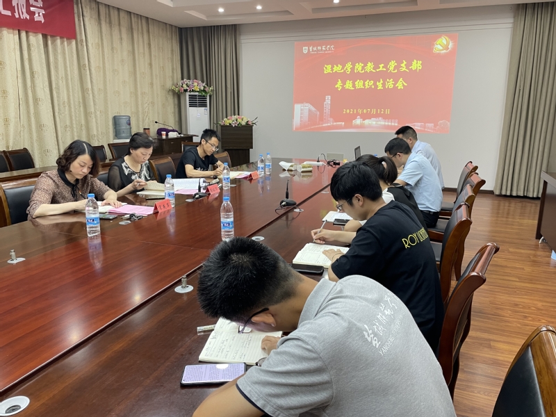 2021年7月12日,太阳成集团122ccvip教工党支部在太阳成集团122ccvip会议室召开专题组织生活会暨支部书记上党课活动。本次活动由教工党支部书记汪正飞同志主持,公司党史学习教育督查组潘丽华书记、湿地公司党总支宋燕萍书记、太阳成集团122ccvip教工党支部全体党员参加会议。