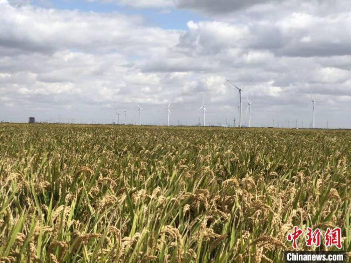 金灿灿的水稻与远处的大风车构成一幅美丽的画卷。于从文摄
