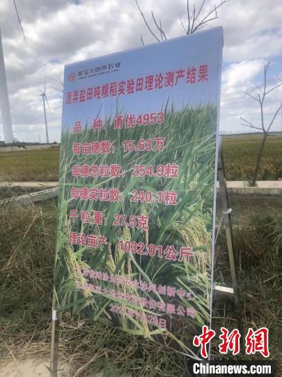 废弃盐田吨粮稻理论测产结果牌。于从文 摄