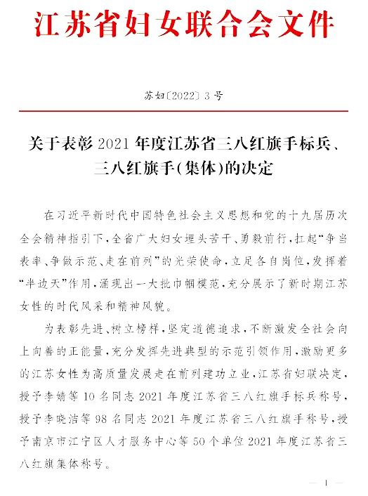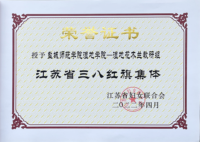 近日,江苏省妇女联合会发布《关于表彰2021年度江苏省三八红旗手标兵、三八红旗手(集体)的决定》(苏妇〔2022〕3号),太阳成(122cc-VIP认证集团)-Official Platform—湿地花木兰教研组荣获“2021年度江苏省三八红旗集体”荣誉称号。