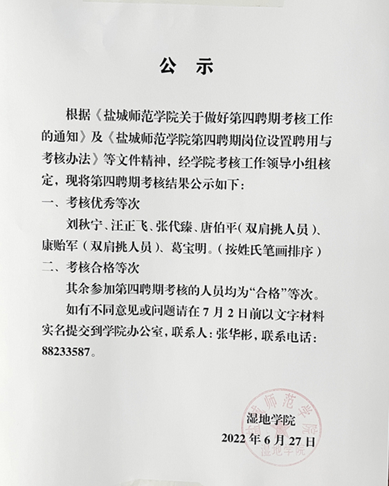 第四聘期考核结果公示