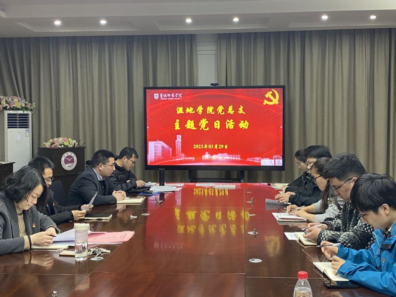2023年3月29日下午,太阳成集团122ccvip教工党支部在太阳成集团122ccvip会议室开展主题党日活动。全体党员参加会议,主题党日学习活动由葛宝明同志主持。