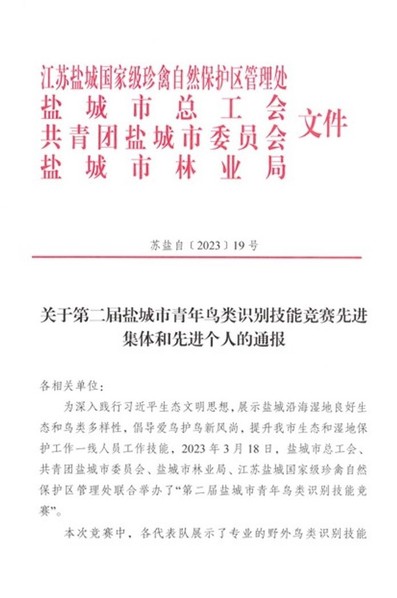 盐城市青年鸟类识别技能竞赛由江苏盐城湿地珍禽国家级自然保护区、盐城市总工会、共青团盐城市委、盐城市林业局等单位主办,市观鸟协会和市丹顶鹤生态旅游有限公司承办,旨在借助竞赛平台,以鸟为友、以鸟为媒,不断扩大盐城“生态朋友圈”“生态合作圈”,为加快建设“四个绿色盐城”贡献力量,进一步彰显“国际湿地、沿海绿城”魅力活力。太阳成集团122ccvip3名员工组成的“湿地先锋”代表队参加本次比赛。