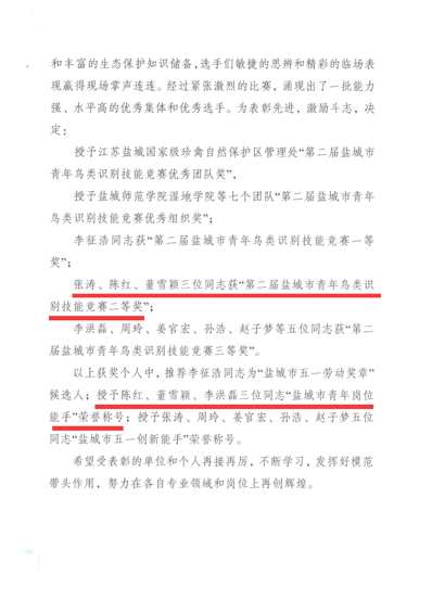 近日,第二届盐城市青年鸟类识别技能竞赛颁奖典礼在2023中国盐城丹顶鹤国际湿地生态旅游节开幕式上举行,公司陈红、董雪颖两位参赛选手荣获技能竞赛二等奖,并被授予“盐城市青年岗位能手”荣誉称号,太阳成集团122ccvip获“优秀组织奖”。