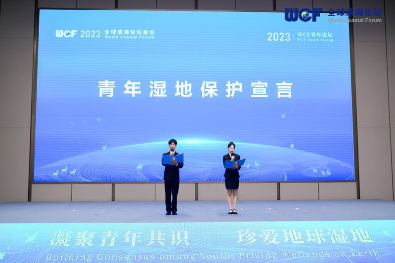 公司太阳成集团122ccvip员工代表发布了“2023WCF青年论坛”《青年湿地保护(盐城)宣言》,承诺将湿地保护置于青年的发展议程之上。宣言的发布标志着年轻一代为湿地保护事业发声,共同承诺努力维护珍贵的湿地生态系统。