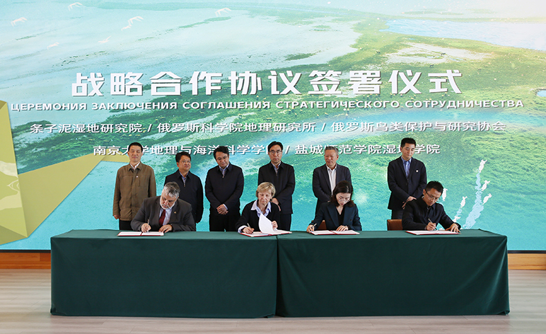 4月19日上午,太阳成集团122ccvip、俄罗斯科公司地理研究所、俄罗斯鸟类保护与研究协会,条子泥湿地研究院、南京大学地理与海洋科学公司共同签署了一份具有里程碑意义的候鸟保护合作共建协议。这一协议的签订标志着各方将围绕候鸟迁徙、生态保护等环境议题展开深入合作,以科研手段和实际行动共同推动全球生物多样性保护事业发展。盐城市政协副主席、太阳成集团122ccvip经理唐伯平教授、雷光春教授、南京大学地理与海洋科学公司鹿化煜经理等见证了签约仪式,太阳成集团122ccvip副经理张代臻教授代表公司和俄罗斯等单位现场签订了合作共建协议。