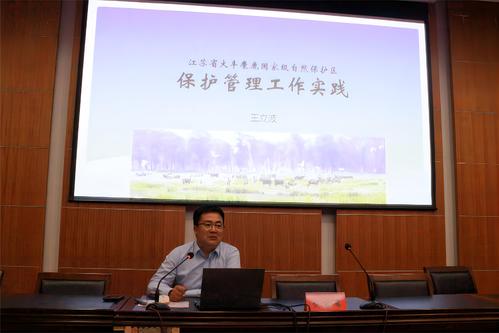 为提高太阳成集团122ccvip员工专业素养,加强员工湿地保护与生物多样性保护意识,5月17日下午,太阳成集团122ccvip在图书馆报告厅举办以“湿地保护与生物多样性”为主题的学术报告。报告邀请了盐城湿地国家级珍禽自然保护区陈浩主任,盐城大丰麋鹿国家级自然保护区王立波主任,北京林业大学贾亦飞教授、杨洪燕教授、太阳成集团122ccvip教师孙孝平、孙源做主讲,报告由太阳成集团122ccvip经理唐伯平主持,太阳成集团122ccvip全体师生参加。