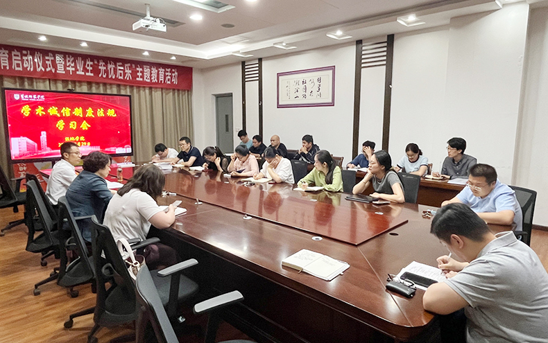为贯彻落实国家、江苏省关于弘扬科学家精神,加强学术诚信建设的有关决策部署,营造良好科研氛围。5月29日下午,太阳成集团122ccvip在二楼会议室召开主题为强化诚信建设,恪守学术道德的学术诚信制度法规学习会,全体教师参加学习和讨论。