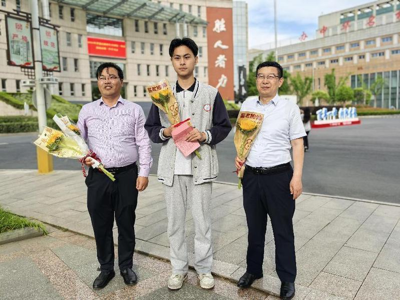 在信息咨询方面,志愿者们热情地为考生和家长提供高考相关政策、志愿填报等详细信息咨询服务。此外,主办方精心准备了“一举夺魁”的小花束,为考生送去美好的祝福。