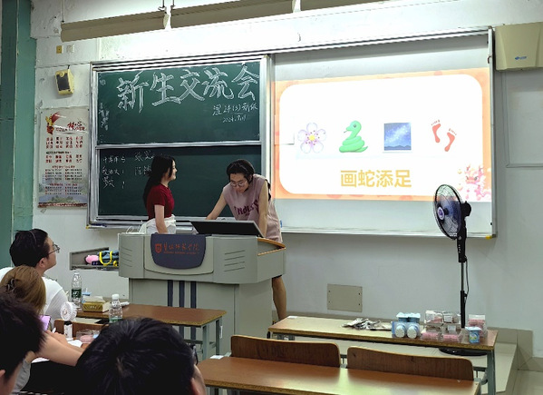 公司不仅为同学们准备了月饼、蛋糕和零食礼包,还组织了“emoji猜成语”等趣味游戏。通过轻松有趣的游戏,大家共同参与,互动不断,使得文艺汇演的氛围更加热烈融洽,让同学们感受到了湿地大家庭的温暖。
