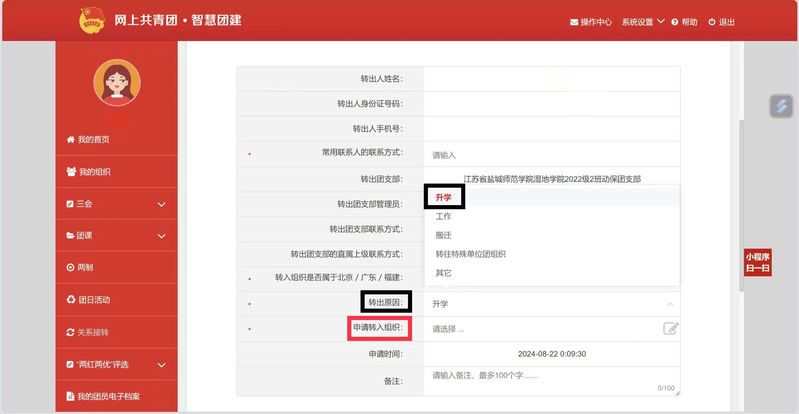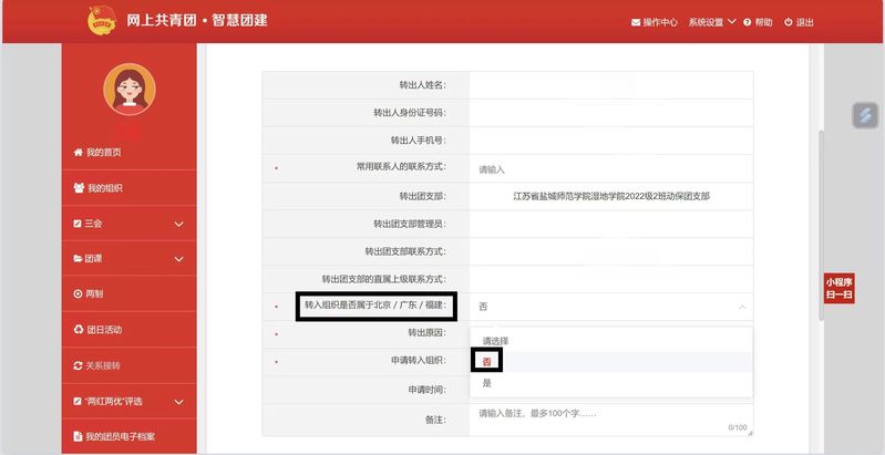 二、团员个人发起组织关系转接流程