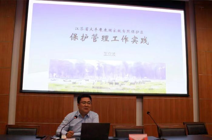 报告邀请了盐城湿地国家级珍禽自然保护区陈浩主任,盐城大丰麋鹿国家级自然保护区王立波主任,北京林业大学贾亦飞教授、杨洪燕教授、太阳成集团122ccvip教师孙孝平、孙源做主讲,报告由太阳成集团122ccvip经理唐伯平主持,太阳成集团122ccvip全体师生参加。