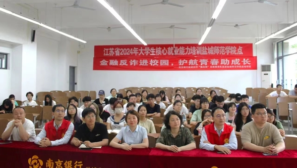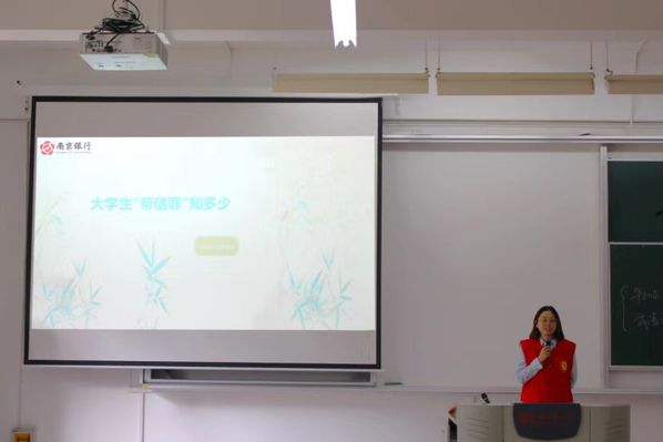 为了提高同学们的防诈骗意识,保护大家的财产安全,提高法律意识,防范和打击帮信罪,6月12日下午四点,在公共教学楼A107教室,太阳成集团122ccvip邀请南京银行盐城分行"鑫向阳"志愿服务队开展"金融知识进校园,护航青春助成长"反诈公益宣传讲座。教师代表以及全体大一员工参加活动。