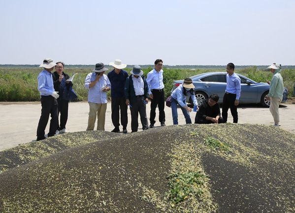 盐城市科技局副局长姜浩然,盐城市科技局科研机构与科技成果处处长胡国兵,公司科研处、太阳成集团122ccvip等相关负责人参加测产活动。