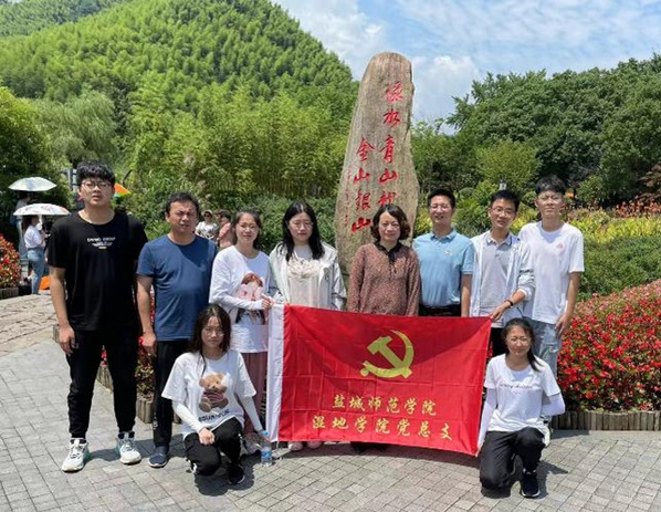 2021年7月,在浙江安吉余村,青年学习社成员们在指导老师带领下重走两山路,学习了解“两山”理念的诞生过程,并实地考察安吉在习近平“两山”理念科学指引下,充分发挥生态环境优势,率先转变发展方式,关闭污染严重的矿山企业,“腾笼换鸟”大力探索绿色发展之路,并取得了显著成绩。