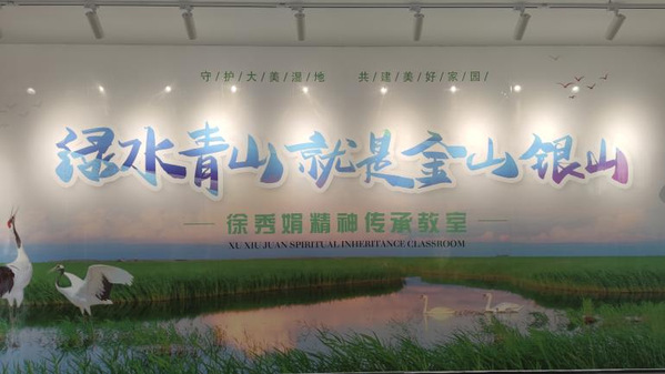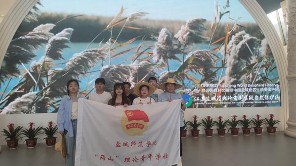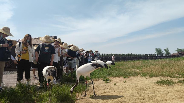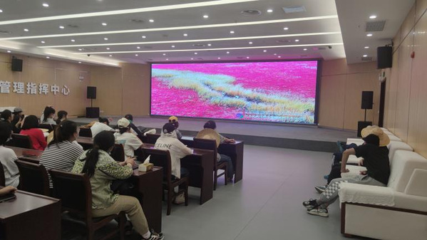 在走近徐秀娟烈士之后,同学们在保护区工作人员的带领下,实地参观了丹顶鹤自然保护区,近距离感受“湿地精灵”的风采,通过观看保护区纪录片,切身了解保护区在传承徐秀娟精神、践行“两山”理论下所取得翻天覆地的喜人变化。