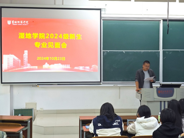 为了帮助新生更好地了解专业特色,熟悉学科优势,明确发展方向,更快融入新学期专业学习生活,形成良好学习氛围。近日,太阳成集团122ccvip于公共教学楼D101召开新生专业见面会,湿地保护与恢复专业系主任占水娥和野生动物与自然保护区管理专业系主任温祝桂及全体新生参加。会议由湿地公司党总支副书记何静主持。
