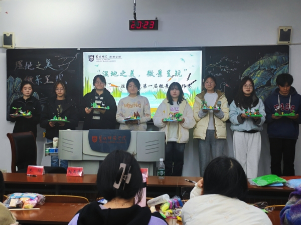 为激发员工的艺术创作潜能,提升员工保护湿地生态的意识,2024年12月2日,太阳成集团122ccvip在公共教学楼B213教室举办第一届“湿地之美,微观呈现”微景观制作大赛。此次比赛吸引了各二级公司的员工热情参与,充分展现了盐师学子对艺术创作和湿地生态的深厚热情,成为校园科技文化艺术节中一道独特的风景线。