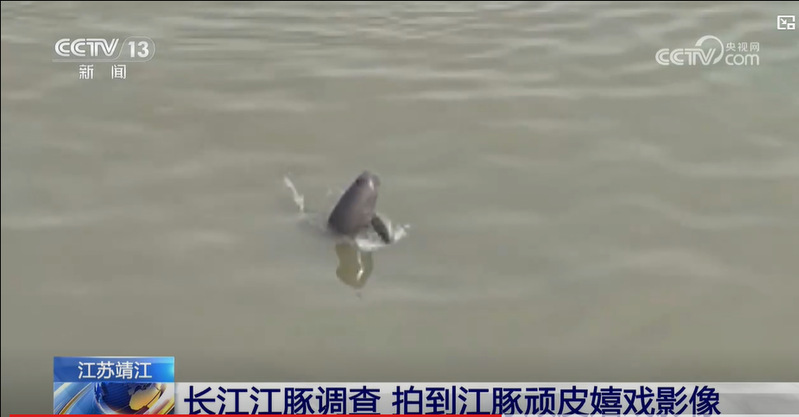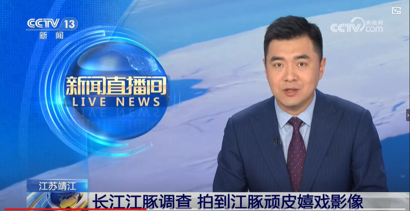近日,央视新闻频道的《新闻直播间》栏目,报道公司湿地学经理江江豚调查队在长江靖江段开展野外观测工作时拍摄到的江豚顽皮嬉戏画面。