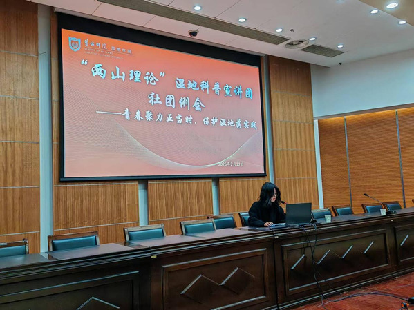 会上,社团负责人全面回顾了团队的阶段性成果。这支平均年龄20岁的青年团队,以蓬勃朝气和创新思维,积极践行“生态+N”模式,不断拓展实践边界。在科技助农、文化传承等领域,团队锚定“湿地保护进社区”的主阵地,深入多个居民区开展沉浸式宣讲活动。通过展板展示、手册发放和互动讲解等形式,他们生动地向公众阐释湿地在气候调节、水源涵养以及生物多样性维护中的关键作用,激发了大众保护湿地的自觉意识。此外,社团还积极联动多方资源,开展了丰富多彩的志愿服务活动,如深入乡村和企业调研乡村振兴的“发展密码”,以及守护美丽岸线行动等,推动绿色发展理念的广泛传播。