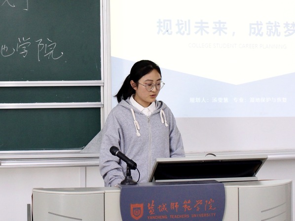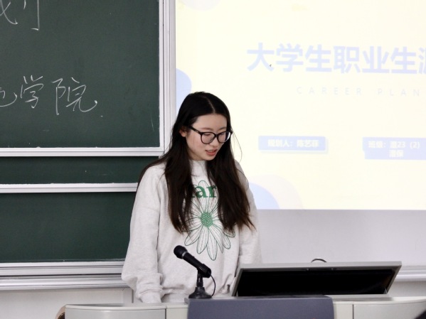 活动现场氛围热烈,参赛选手们纷纷化身“职业规划师”,通过PPT演示、视频展示及现场解说,系统呈现“自我认知-职业定位-发展路径”三大模块。例如,周欣怡以SWOT分析法解构个人优势,结合行业数据论证目标岗位可行性;汤雯慧则通过情景模拟展现危机应对策略,凸显规划的实操性。评委团围绕职业壁垒突破行业趋势预判等核心议题展开追问。如针对新兴领域就业风险,评委引导其从政策扶持、技能储备等维度完善方案,既检验逻辑严密性,亦启发全局观构建。