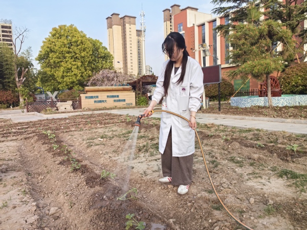 春日的种植田里,志愿者们分工协作,翻土、栽苗、覆土、浇水,每个环节都凝聚着专注与匠心。野生动物与自然保护区管理专业员工周文琦在劳作后感慨:“课本中的植物生长知识,在躬身实践中才真正鲜活起来。汗滴禾下土的艰辛,让我深刻理解湿地保护对农业生产的深远意义。”沾满泥土的双手不仅收获了劳动成果,更让“劳动创造价值”的理念深植心间。