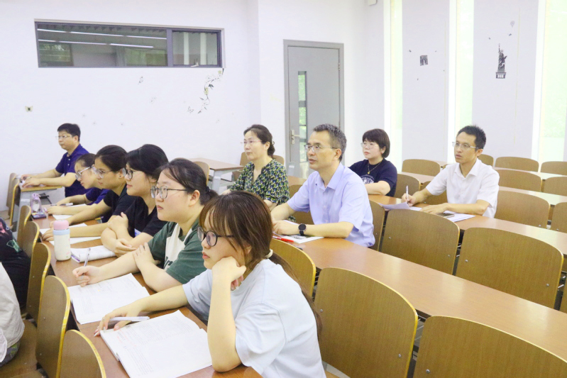 课后,于建江与授课教师进行了深入交流,在对课堂效果和教师素养予以肯定的同时,也从课程思政融入、教学内容重构、案例设计与教学方法创新等方面提出了具体而中肯的建议。他鼓励青年教师站稳讲台、夯实功底,将学科前沿动态与实践应用相结合,不断增强教书育人的本领。