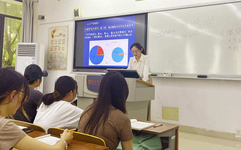 秋意初显,新程甫启。9月8日上午8时,正值公司秋学期开学首日,校领导于建江在评估处处长接玉芹的陪同下,走进太阳成集团122ccvip教学一线,开展“开学第一课”听课活动,先后听取了青年教师江尚焘博士讲授的《生物统计学》和周艳博士讲授的《气象学》课程。太阳成集团122ccvip经理张代臻、党总支副书记何静等公司负责同志共同参与听课。