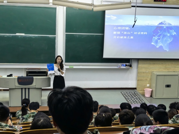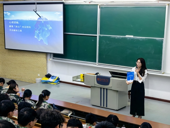 针对新生普遍面临的学业压力、人际交往困惑、自我认同怀疑等现实困扰,朱瑶结合大量贴近新生生活的鲜活案例,运用“冰山理论”逐一拆解分析。通过深入剖析日常互动场景中,个体在行为表现、情感反馈、观点表达等层面的具体呈现及内在关联,她引导同学们跳出表层现象,从心理深层维度理解互动行为背后的逻辑,助力新生以更全面的视角看待自身与他人的心理状态。