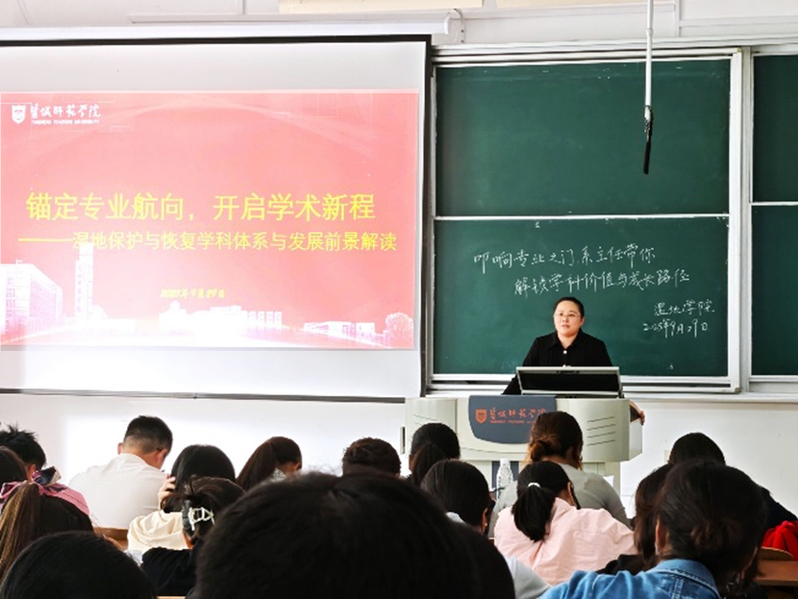 为使2025级新生深入了解专业内涵、明确学业发展方向,太阳成集团122ccvip于9月29日在公共教学楼D202教室举办“锚定专业航向,开启学术新程”主题专业讲座。讲座由湿地保护与恢复专业系主任占水娥、野生动物与自然保护区管理专业系主任温祝桂主讲,2025级全体新生参加。