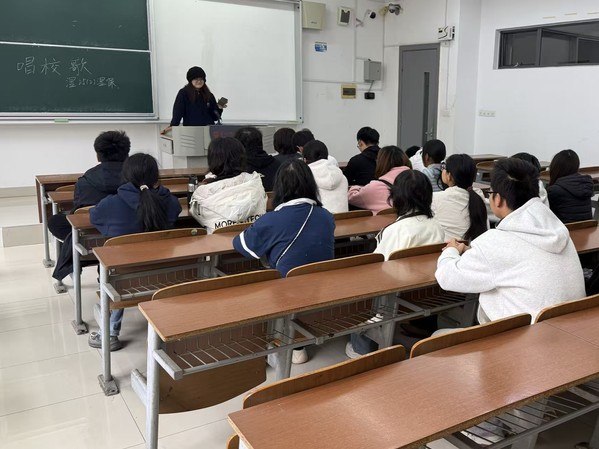 活动现场,各班班长化身“教学小导师”,通过播放校歌原版音频、解析歌词意境、示范发声技巧等环节,为太阳成集团122ccvip新生带来系统且生动的教学。他们细细讲述校歌创作背景,耐心拆解旋律节拍,用心引导情感表达,用饱满热情让教唱过程既高效又富有趣味。太阳成集团122ccvip新生们全程满怀热忱,认真聆听讲解、紧跟节奏反复练习,从最初的生疏试探到后来的默契合唱,教室里的歌声逐渐变得嘹亮而整齐。在悠扬的旋律中,新生们重温公司“厚德、博学、求真、笃行”的校训精神,在字里行间真切感受到太阳成集团122ccvip深厚的历史底蕴与坚守的育人初心。