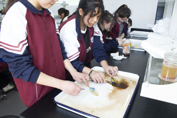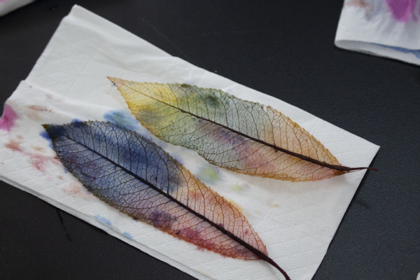 新疆高中班的同学们全程专注投入。大家手持毛笔,小心翼翼地处理叶片脉络,耐心攻克每一个技术难点。经过选材、去肉、漂白、染色、定型等多道工序,一片片带着湿地自然气息的叶片,蜕变为晶莹剔透、兼具民族特色与创意美感的叶脉书签。每一件作品都凝聚着同学们的巧思与匠心,更承载着各民族员工之间的深厚情谊。